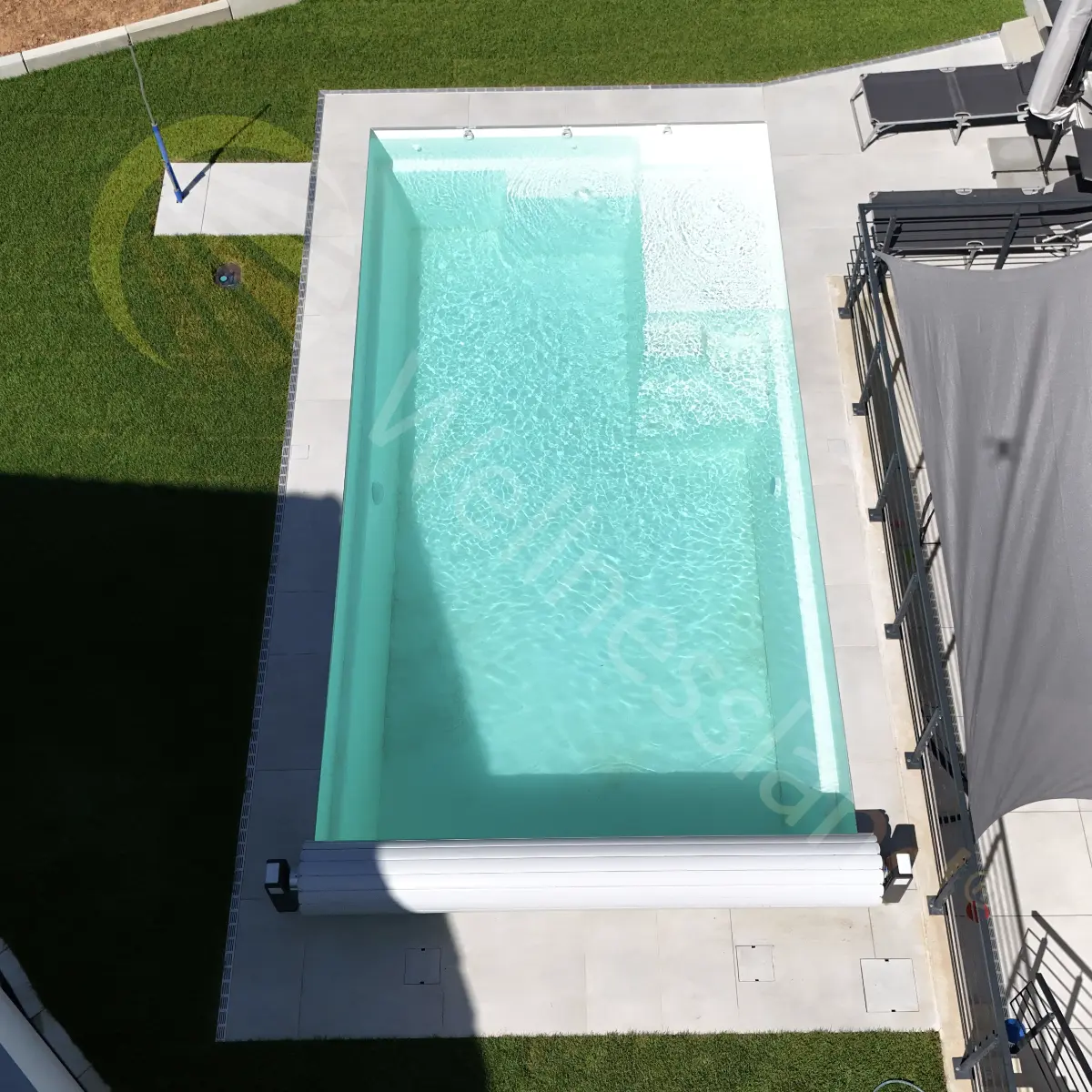 MdP Kubyka 73 hat ein modernes Design, mit avantgardistischen Volumen und Formen. Die tragende Idee basiert auf einem minimalistischen Ansatz, der durch klare Linien und einen raffinierten Stil besticht. Für maximale Funktionalität konzipiert, wartet dieses Becken mit einer eingebauten Sonnenliege als Entspannungsbereich halb unter Wasser auf.