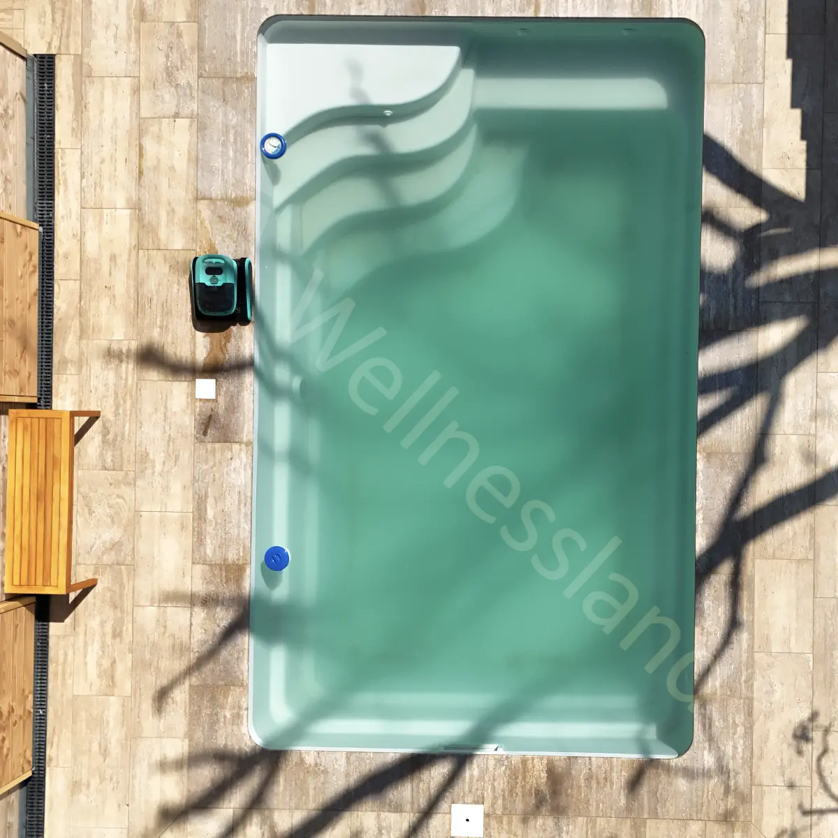 Inspiriert durch die Wellen des Meeres: Wussten Sie, dass die Stufen im Unique-Modell die Bewegung der Wellen nachahmen sollen? Um Ihnen den Pool Ihres Lebens zu bieten, wurde an jede Kleinigkeit gedacht. Damit Sie den Badebereich optimal nutzen können, befinden sich die Stufen auf einer Seite. Und direkt daneben befindet sich eine große, bequeme Bank, auf der Sie unzählige Stunden mit Ihrer Familie verbringen können.