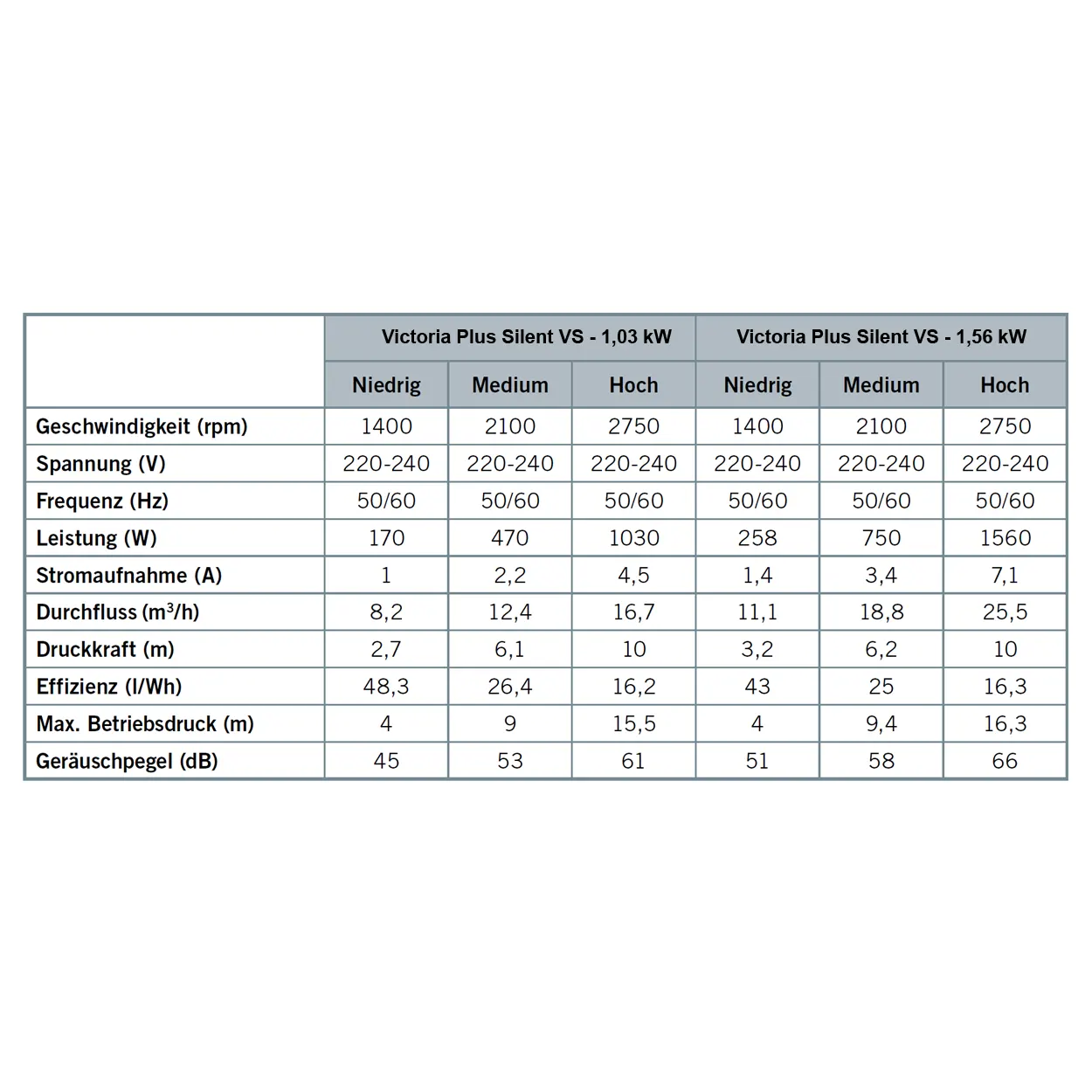 Victoria Plus Silent Vs (variable Drehzahl) Technische Daten